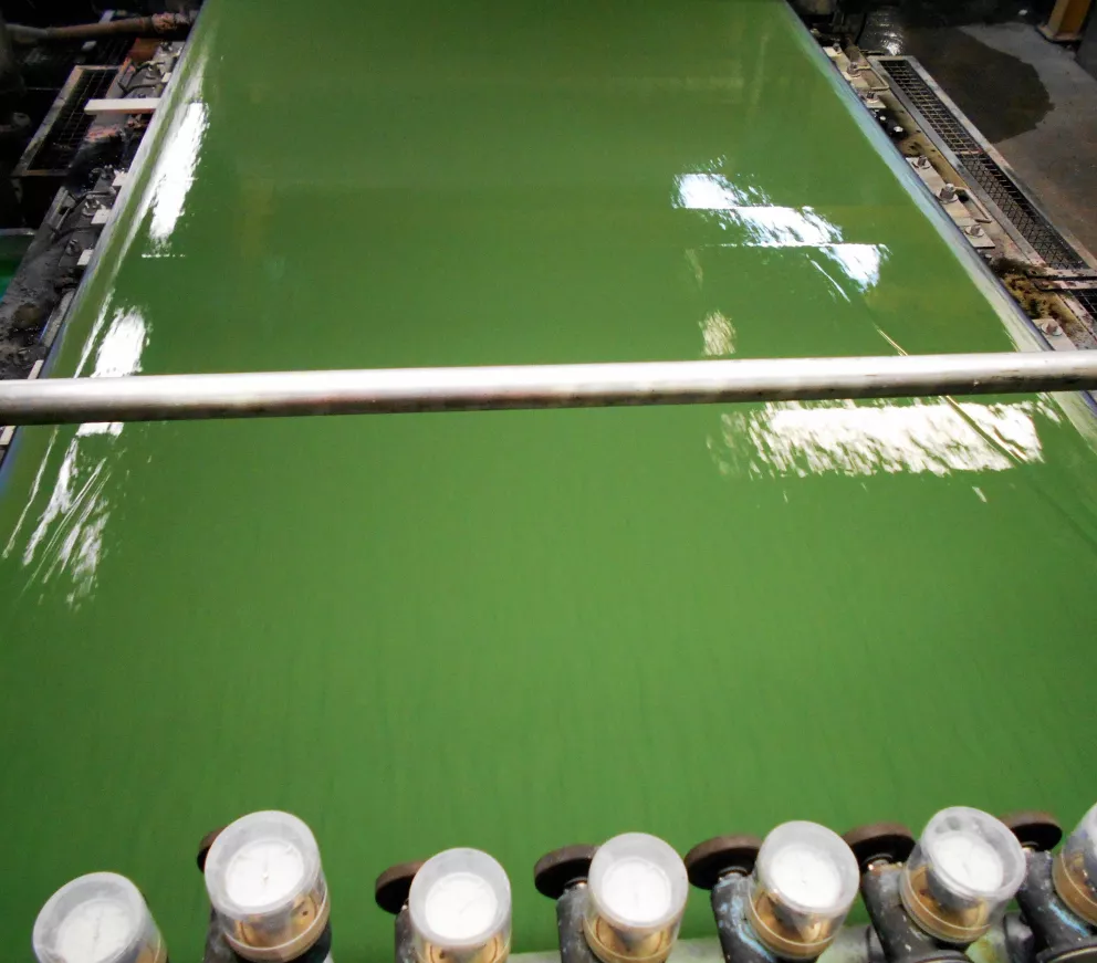 “We then made the hand sheets and assess them under various different light sources to ensure that we’ve got the correct colour that is going to fit our Kendal green brand colour.