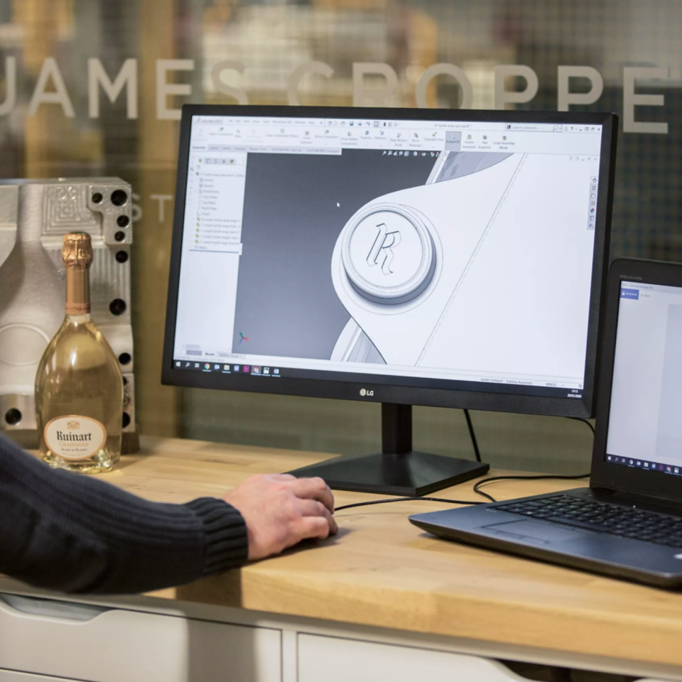 We spent a lot of time looking and collaborating on the clasp, this touch point. It might be someone’s first interaction with the Ruinart brand, so they wanted it to be really positive. The design had to get the branding on there, but not at the expense of its sleek function. The click was really important for them. It was really challenging for us, but we really like being challenged.
