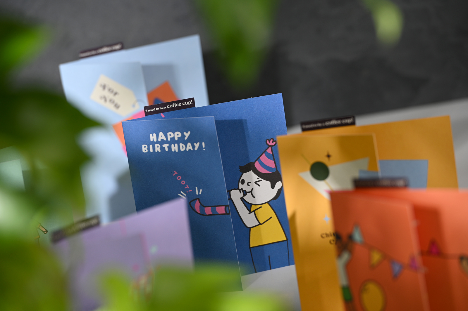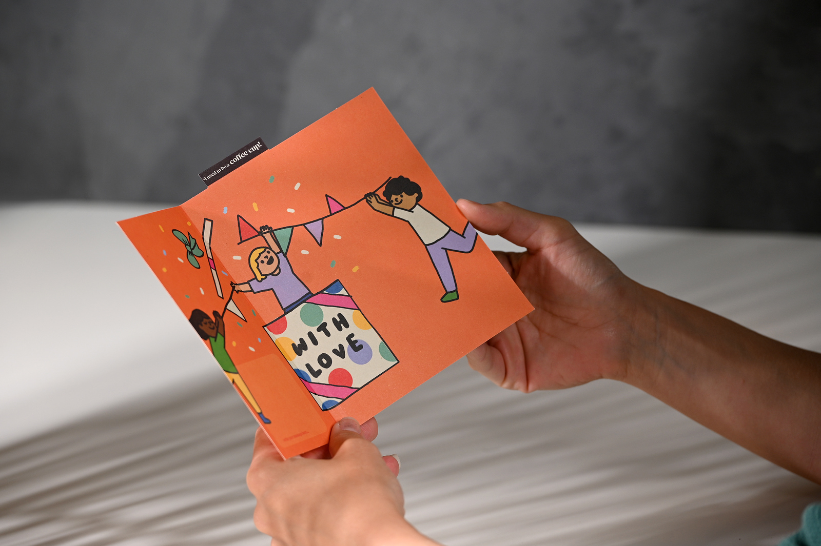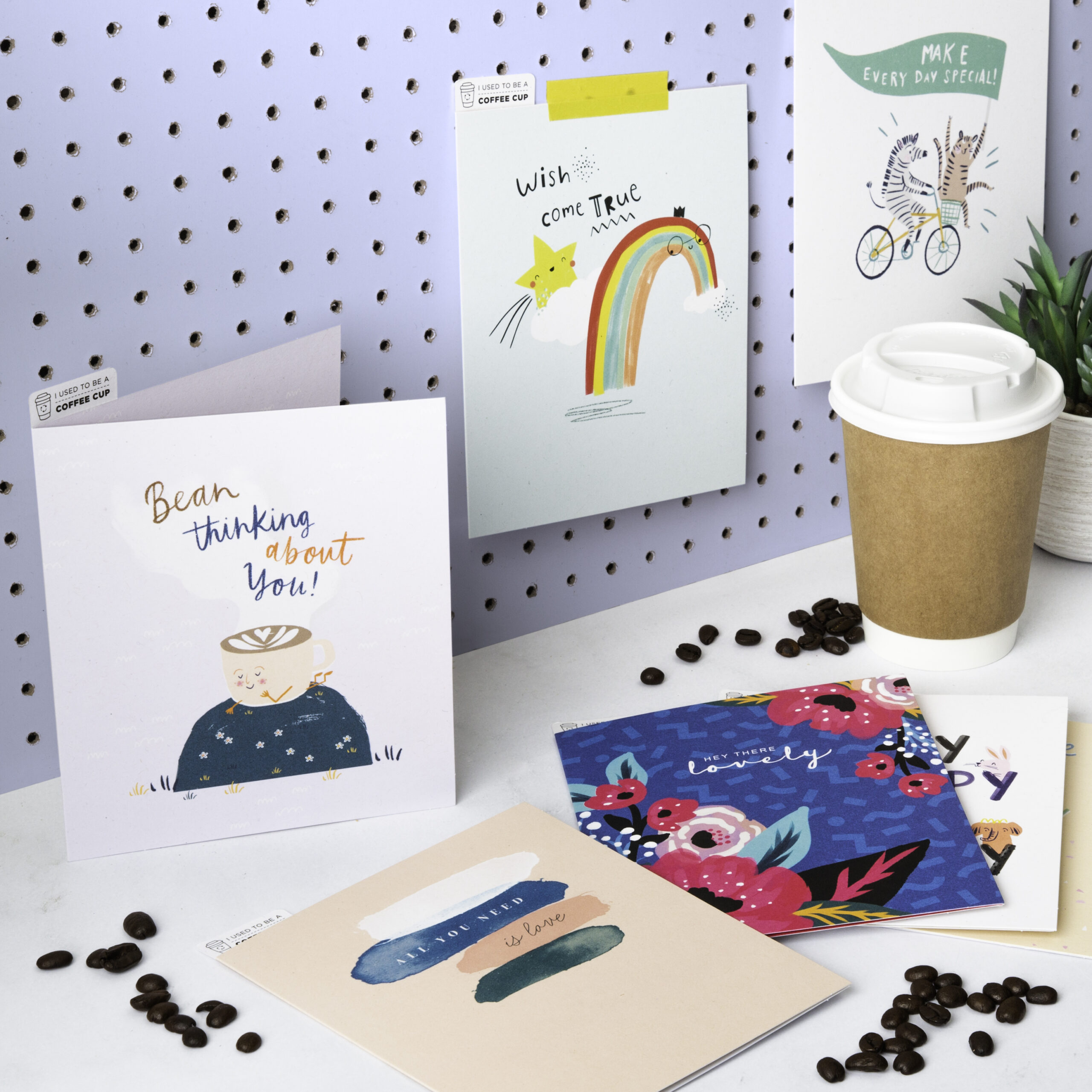 We were delighted to partner with super-brand greetings cards, party goods and stationery retailer Hallmark Cards to create a card collection made from upcycled coffee cups.